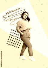 woman with mobile phone. yellow backgroundless cutout of a girl with a cell phone