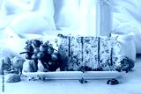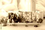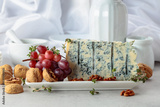 Gorgonzola cheese with walnuts, red grapes, and thyme.