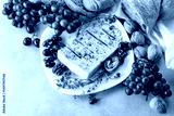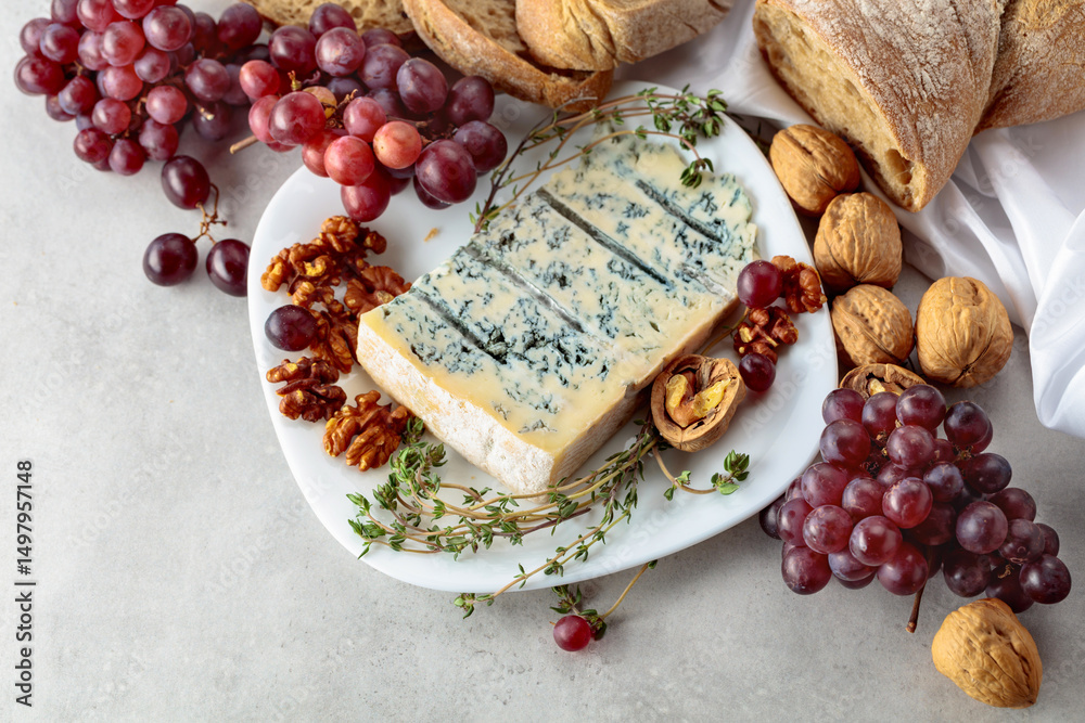 Gorgonzola cheese with walnuts, red grapes, and thyme.