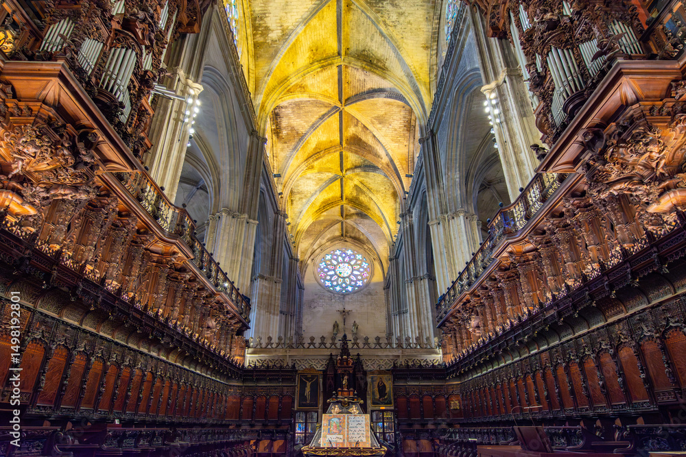 Interiors of Seville gothic cathedral in Andalusia, Spain