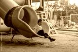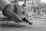 happy toddler baby girl sliding and playing at playground