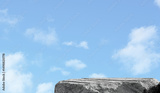 Sky ,Cloud with Rock Stone Podium on Blue background, Grey rock sea podium outdoor on clear blue sky in sunny day summer,Product display for cosmetic ,spa beauty banner background