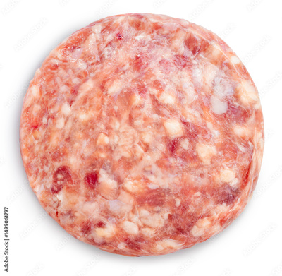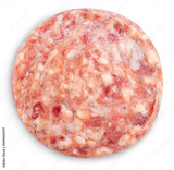Hamburger Ground Beef Recipe isolated on white background, Raw Ground meat on white background with work path, High resolution focus stacking photography.
