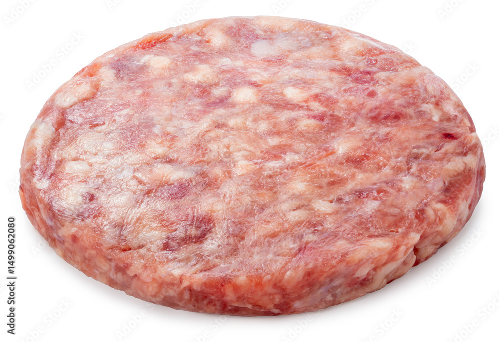 Hamburger Ground Beef Recipe isolated on white background, Raw Ground meat on white background with work path, High resolution focus stacking photography.