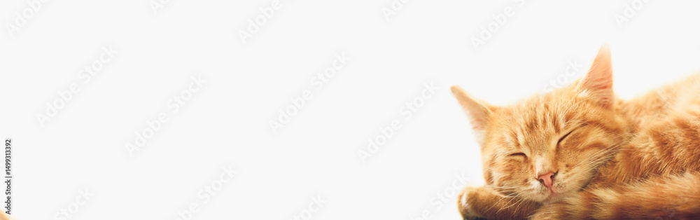 Little Red Kitten Sleeping On White Background