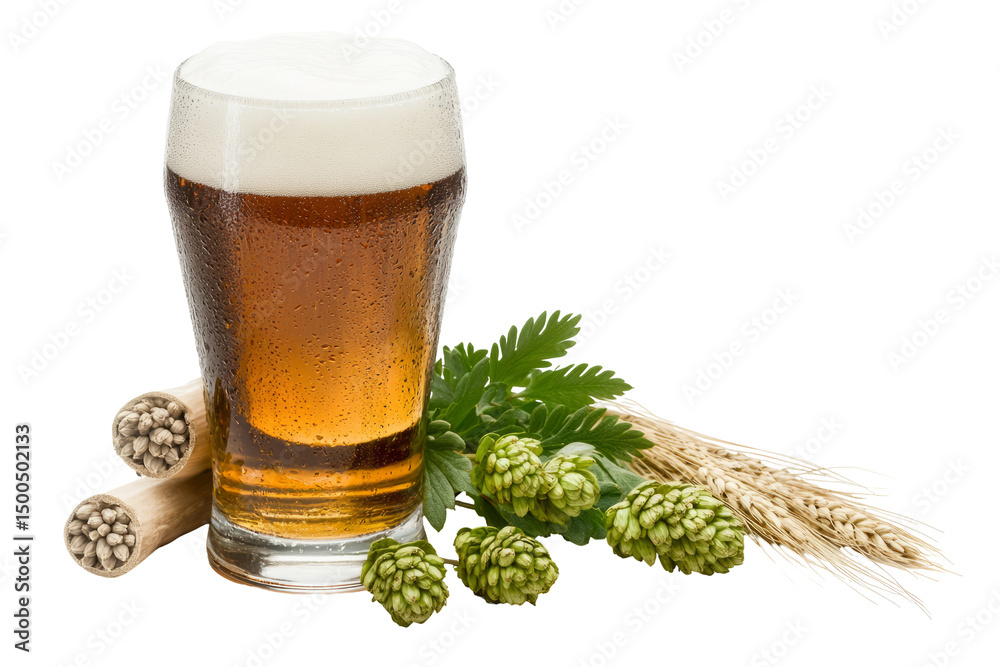 Fresh beer with hops, barley and malt. Perfect for advertising craft beers, pubs or summer drinks.