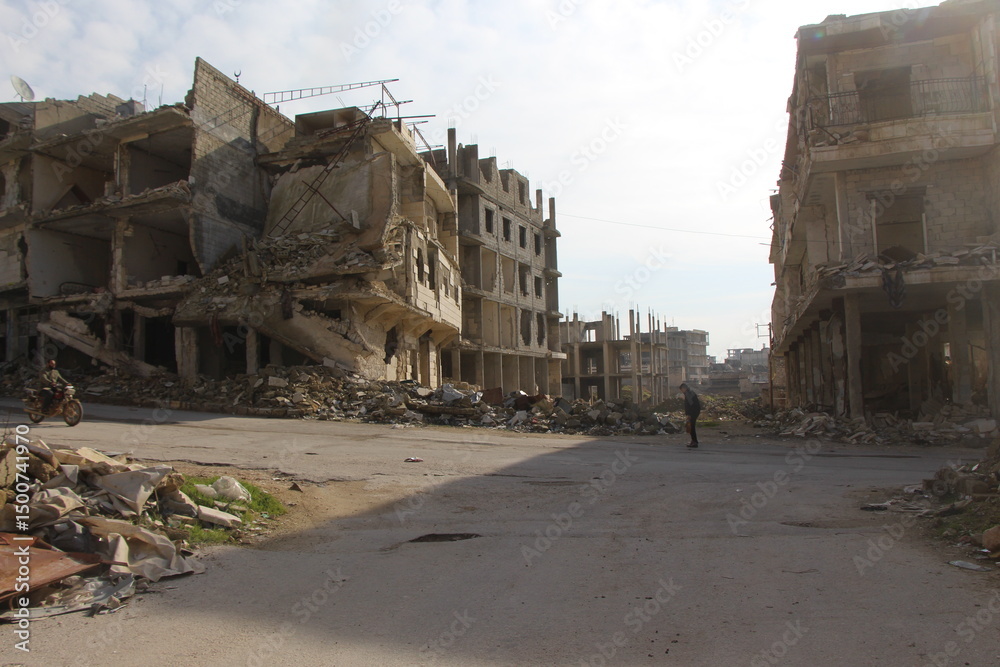 The aftermath of the war in Aleppo Syria which it part has been also affected during the Russia and Ukraine war