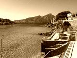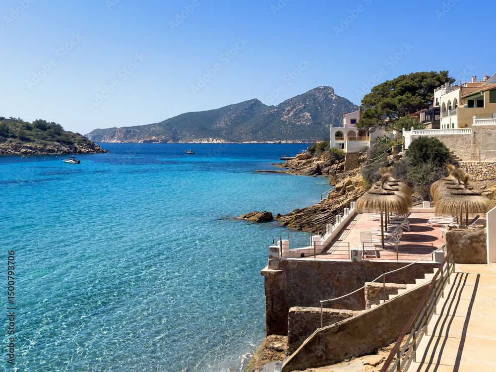 Beach houses with terraces with a seascape view at the Mediterranean sea