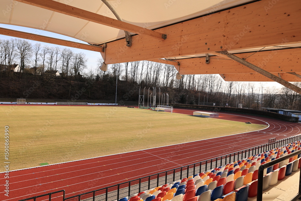 Blick in das renovierte Huckenohlstadion in Menden im Sauerland