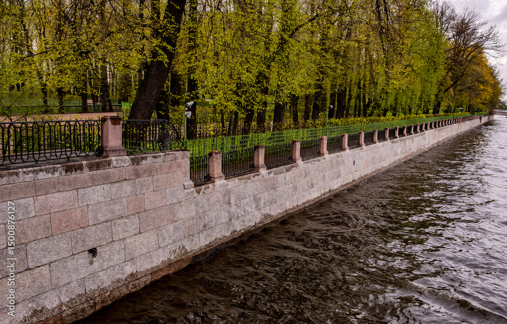 Granite embankment on the river bank near the park.