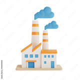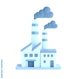 Industry And Pollution Concept. Cartoon Style Factory Icon With Chimney And Smoke. 3d Rendering