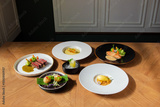 Modern Thai Fine Dining Set on Wooden Table with Natural Lighting