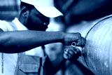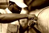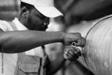 Skilled worker repairs industrial pipes in a factory during daytime work hours
