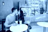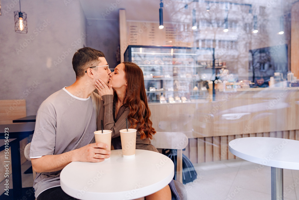 Couple sharing a sweet moment together at a cozy cafe during the afternoon