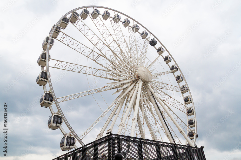 Modern Ferris Wheel Against cloudy Sky | Nowoczesny diabelski młyn na tle pochmurnego nieba