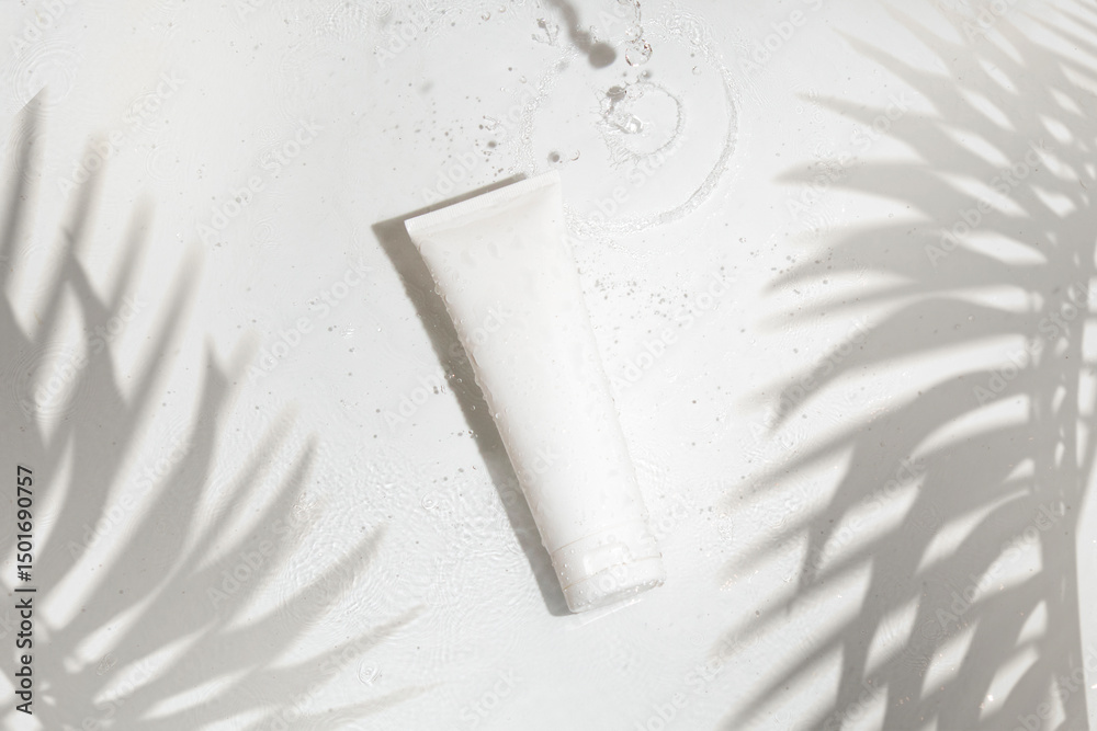 makeup cosmetic medical skin care, a mockup for cream lotion bottle product, packaging on white waterdrop fresh with glass background