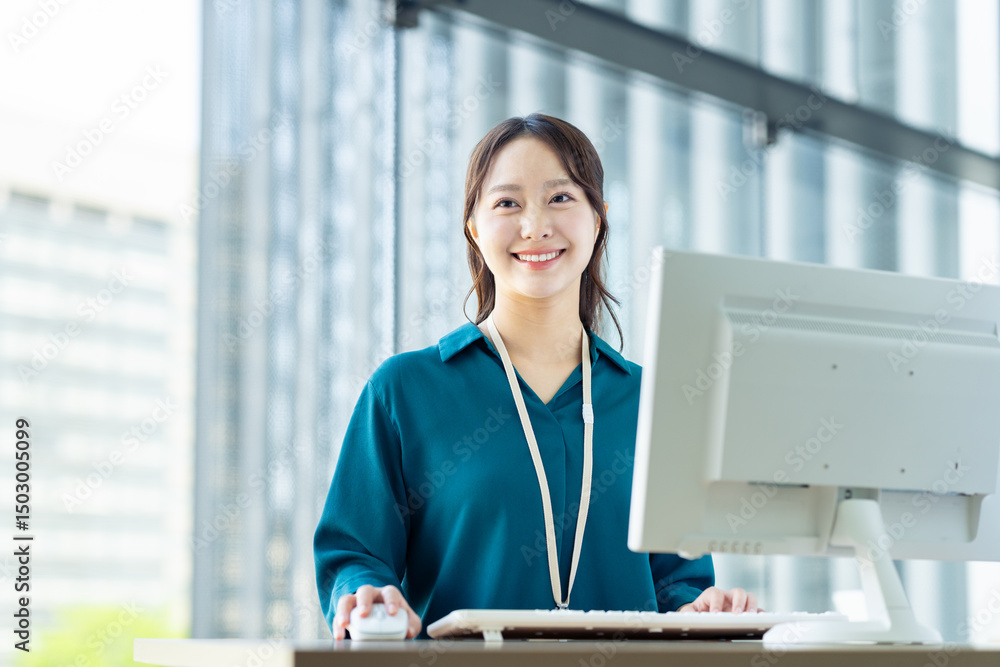 オフィスで働く若いビジネスウーマン 撮影協力:スカパー東京メディアセンター