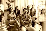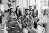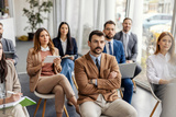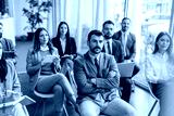 Group of managers sitting at boardroom on seminar and listening lecture.