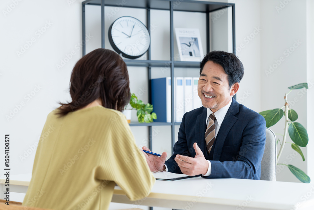 ミドルの女性に説明するプランナーの男性
