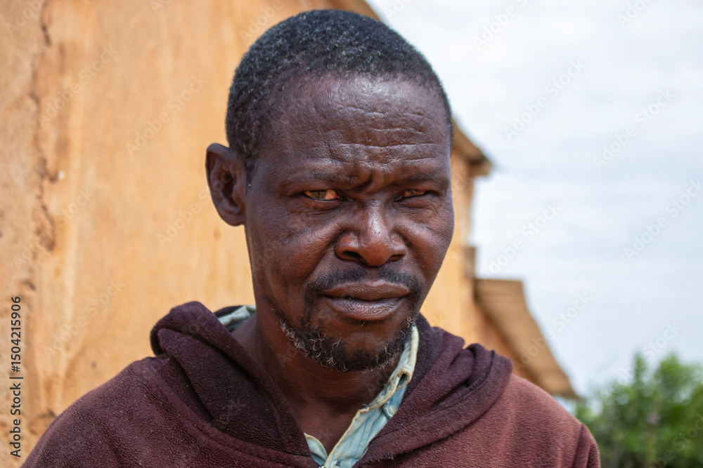 Portrait of a real elderly African man with deep wrinkles and expressive eyes. A natural and emotional image capturing human strength, wisdom, and timeless character.