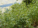 Tall clumps of Arabian pea (Bituminous Psoralea) with round pinkish lilac flowers on thin, sparsely branched stems, spreading abundantly over the stony soil of the Provençal scrubland