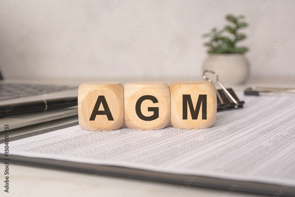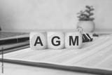 Wooden blocks with AGM letters on office table concept of annual general meeting