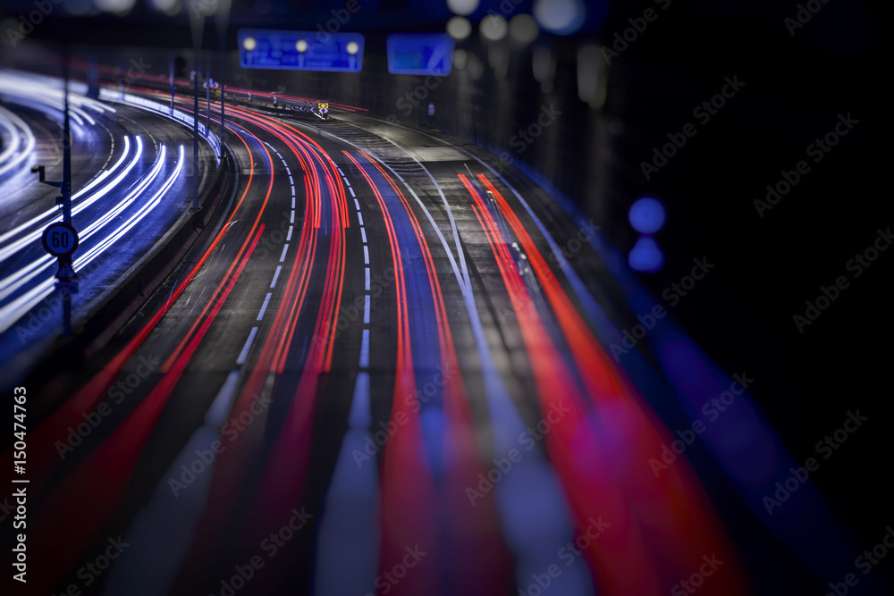 colorful light trace from night traffic in the city