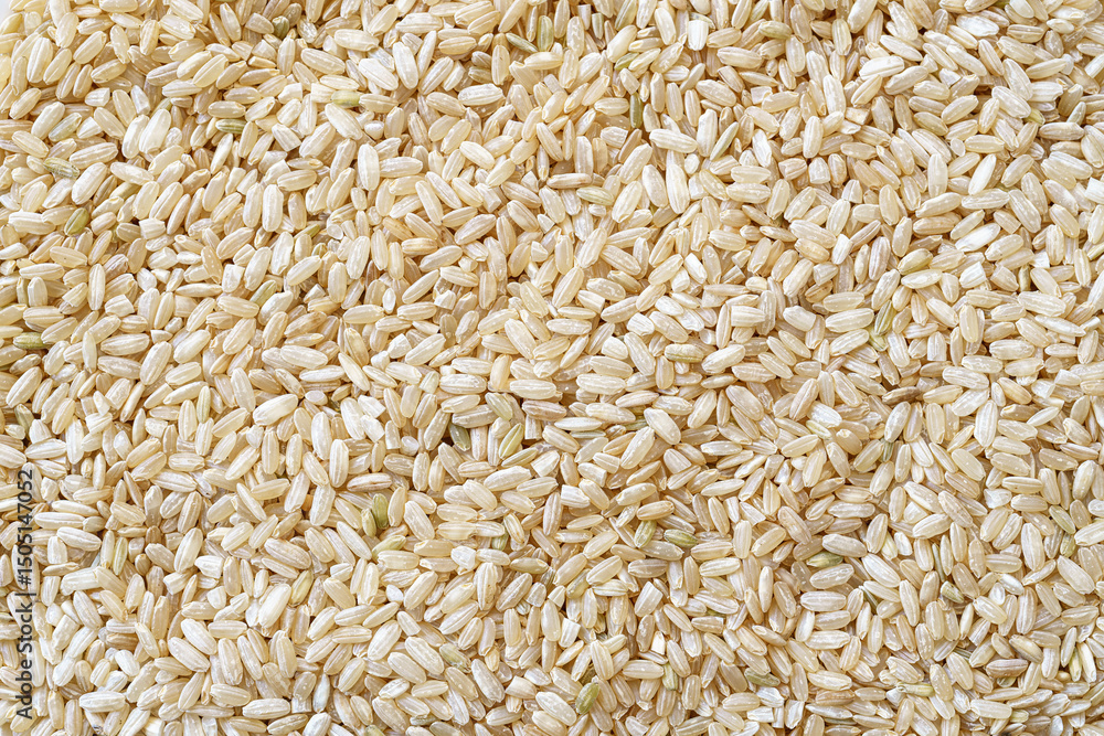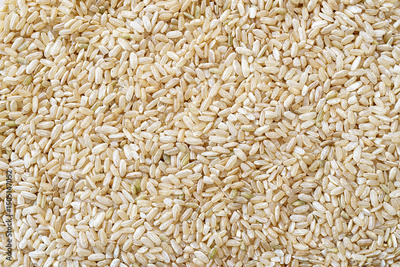 Full frame close up flat lay texture of brown rice for food and nutrition background healthy eating and cooking concept with copy space pattern of organic grains.