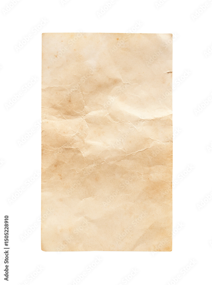 Old paper sheet background. Grunge vintage paper texture isolated on white background with clipping path. Close up image.