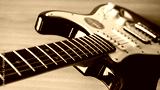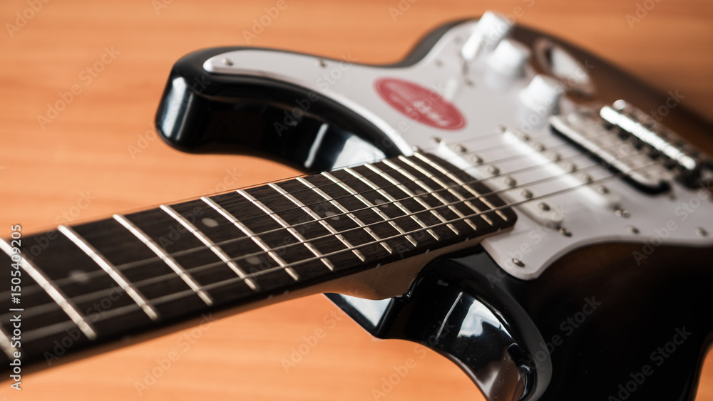 Captivating electric guitar close-up home studio warm lighting artistic perspective