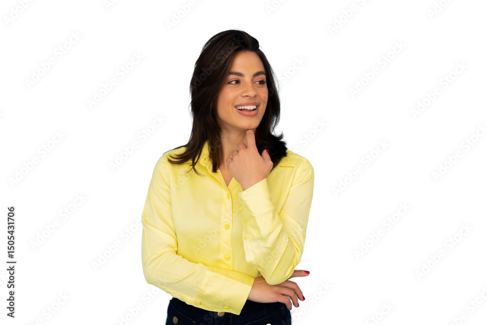 Studio portrait of a businesswoman having a new idea touching her chin, isolated on transparent background