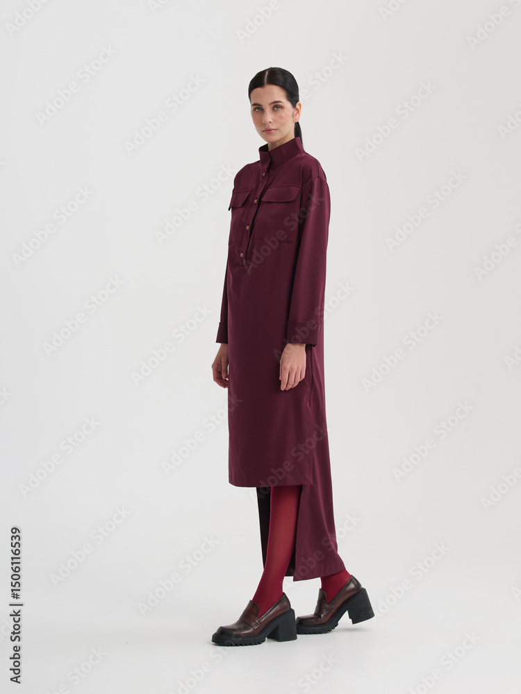 Fashion shooting in studio . Professional model , fashionable clothes and style, new collection. stylish look