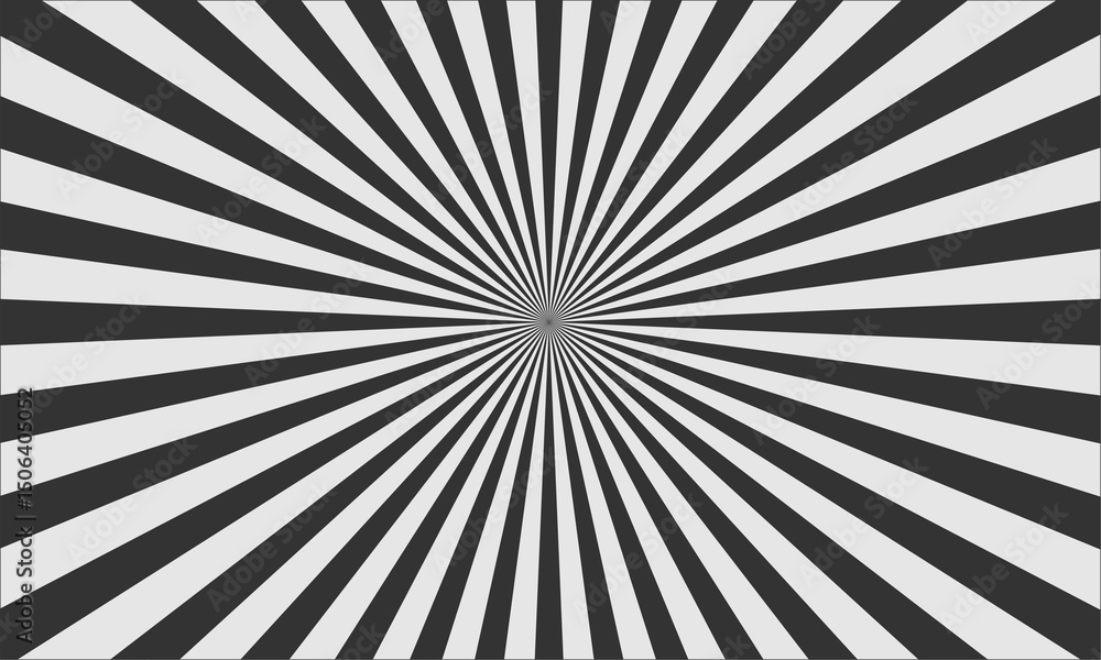 Dynamic Black and White Pop Art Starburst Background, Retro Comic Book Style Radial Rays Design, Abstract Monochrome Sunburst Explosion Graphic.