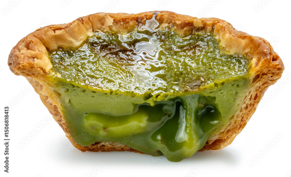 Matcha Green Tea Egg tart isolated on white background, Egg tart on white With clipping path, High resolution photography.