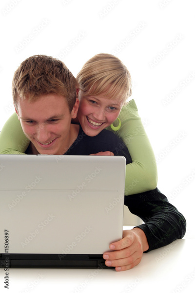 couple using laptop