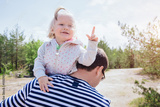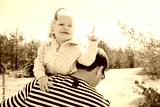 Funny little girl shows finger, she got an idea