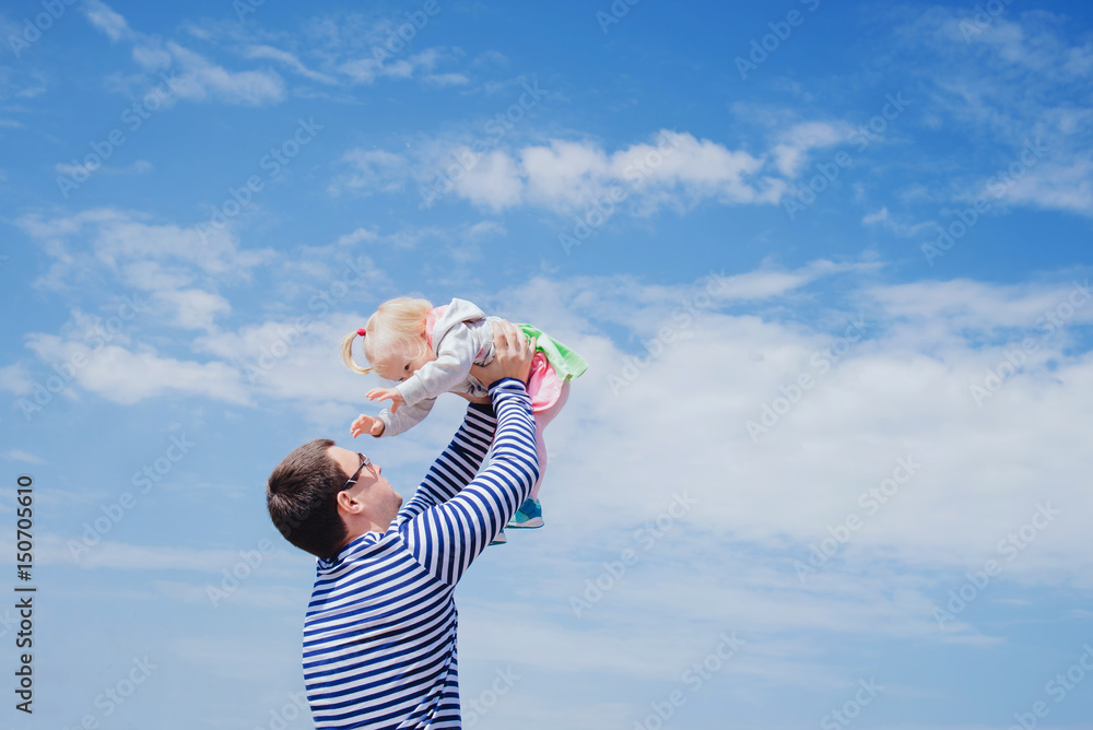 Father throwing up little daughter to the air