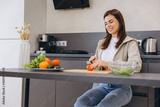 Young Woman Cutting Vegetables Preparing Healthy Meal in Modern Kitchen