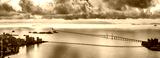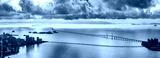 Major sea-crossing bridge connecting islands over the ocean at sunset near Hong Kong and Macau.
