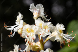 Clusters of white chestnut flowers burst forth in a tranquil garden, their delicate petals and soft fragrance inviting pollinators