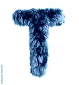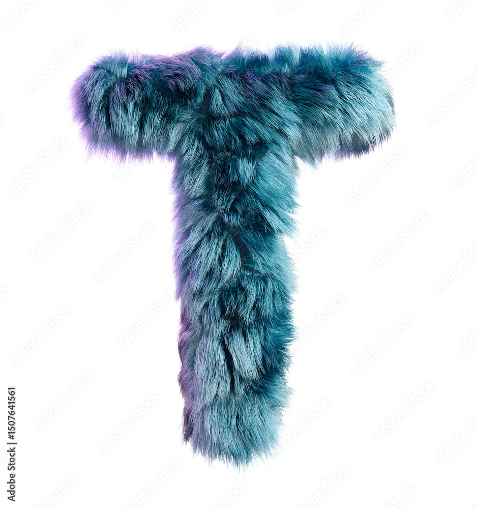Furry Blue Letter T Isolated on White Background in Creative 3D Design Style