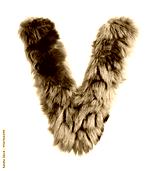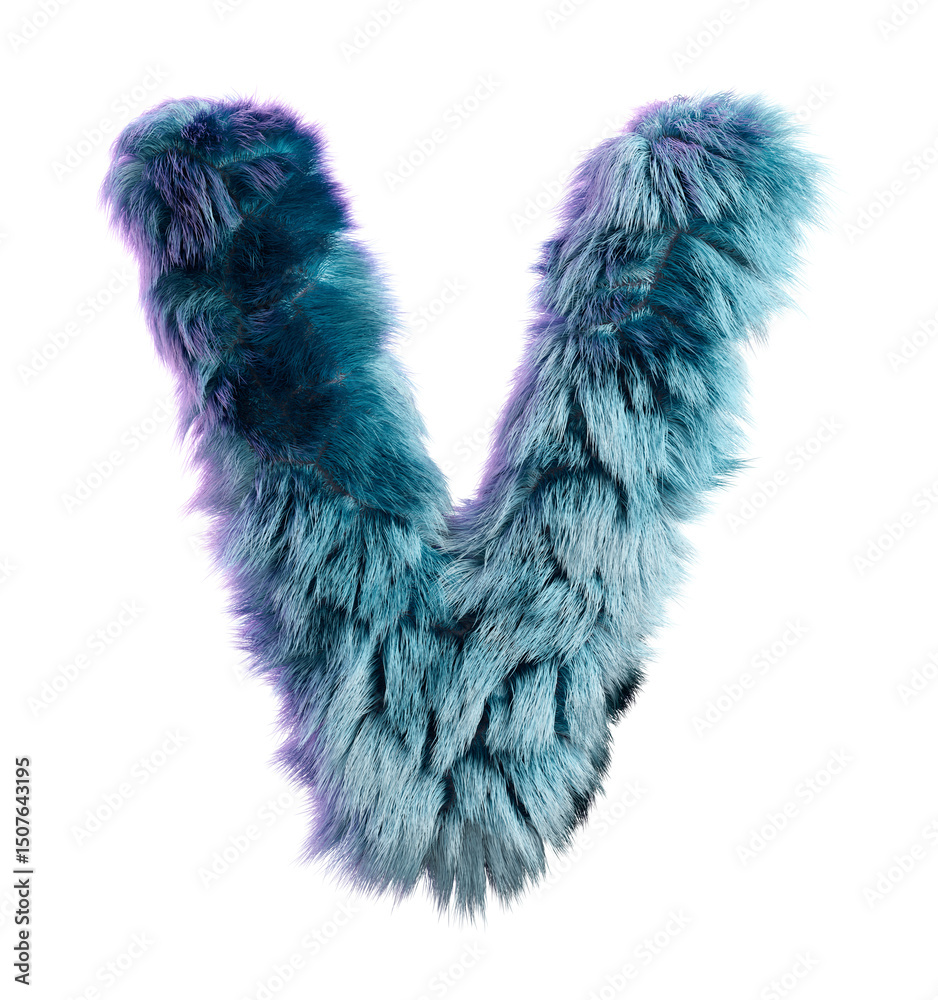 Fluffy Blue Furry Letter V on a Clean White Background