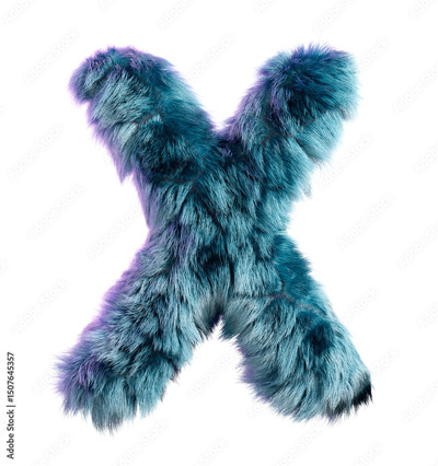 Blue Fur Styled Into Bold Letter X Isolated on White Background