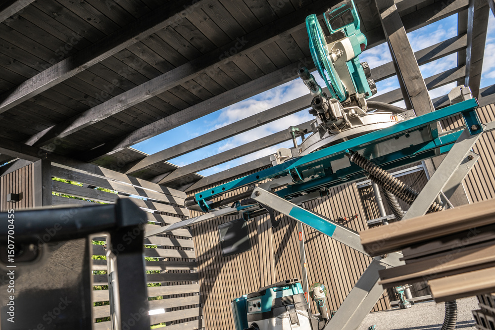 Professional Carpentry Equipment Inside a Modern Workshop on a Sunny Day