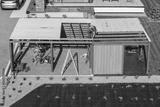 Carpentry Work on Modern Outdoor Structure in a Landscaped Yard During Bright Daylight