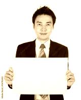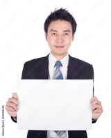 business man holding a blank paper sheet isolated on white