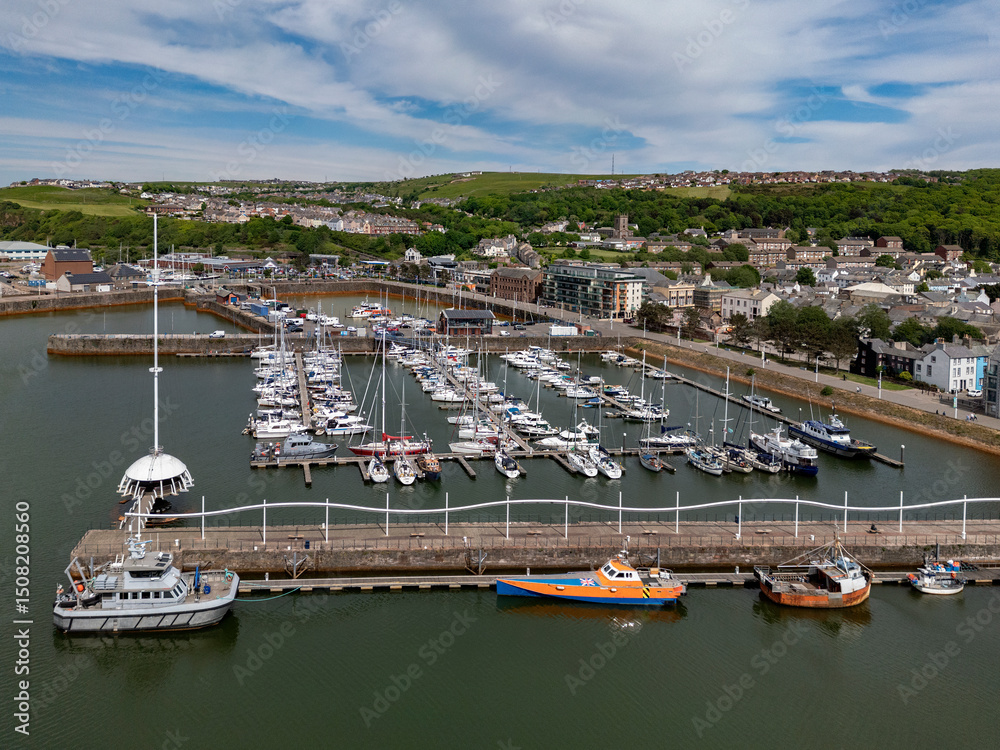 The harbor in the town of Whitehaven on the coast of Cumbria in the northwest of England