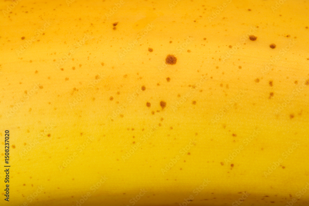 A close-up shot of a yellow banana peel with small brown spots, showing its natural texture