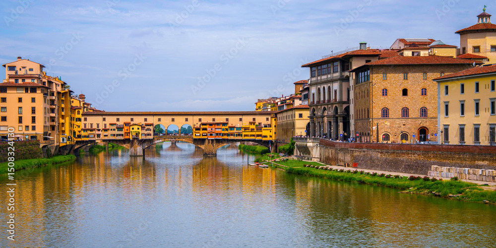 Ponte Vecchio and Vasari Corridor in Florence, Tuscany, Italy—historic medieval architecture and iconic stone bridge spanning the Arno River