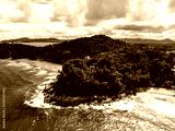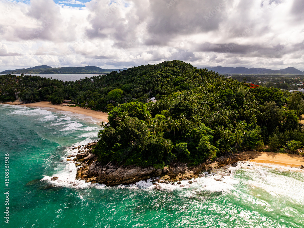 Aerial view landscape sea beach in raining season at Phuket island Thailand.
